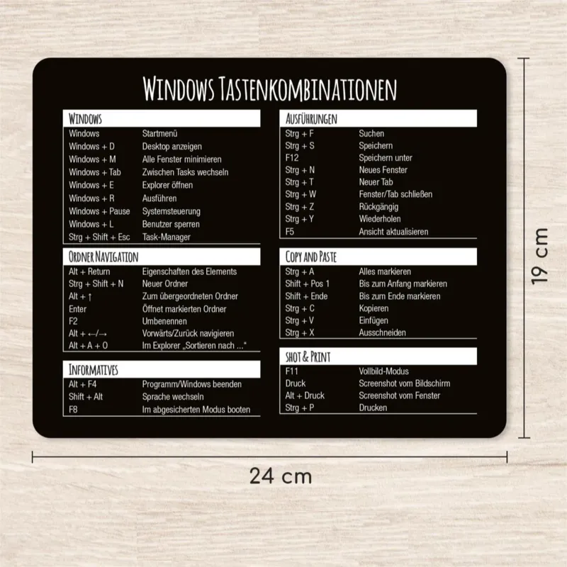 The 24x19cm mouse pad with Windows keyboard combination is non-slip, waterproof and easy to clean, ideal for home office laptop use