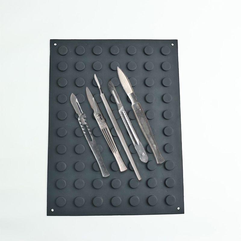 Our Magnetic Mat provides a sterile, neutral field for the safe placement and hands-free transfer of instruments. It is latex free, reusable, and autoclavable (up to 134° C). Round magnets to avoid rubber perforations,Raised magnets hold instruments firmly in place while allowing for easy grasping.