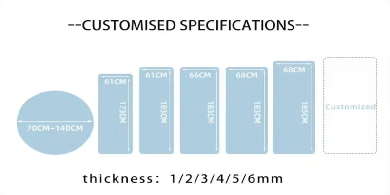 Available in multiple thicknesses (1.5mm, 3mm, 4mm, 4.5mm, 5mm, and 6mm), this mat caters to different user preferences, ensuring a comfortable and secure grip for users of all levels